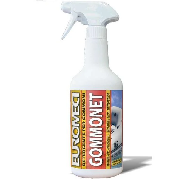 Gommonet es un producto que limpia y restaura el color original de los flotadores de botes inflables, neumáticas y semirrígidas. Ya que no es un producto dañino para los flotadores, puede ser utilizado diariamente para limpiar.